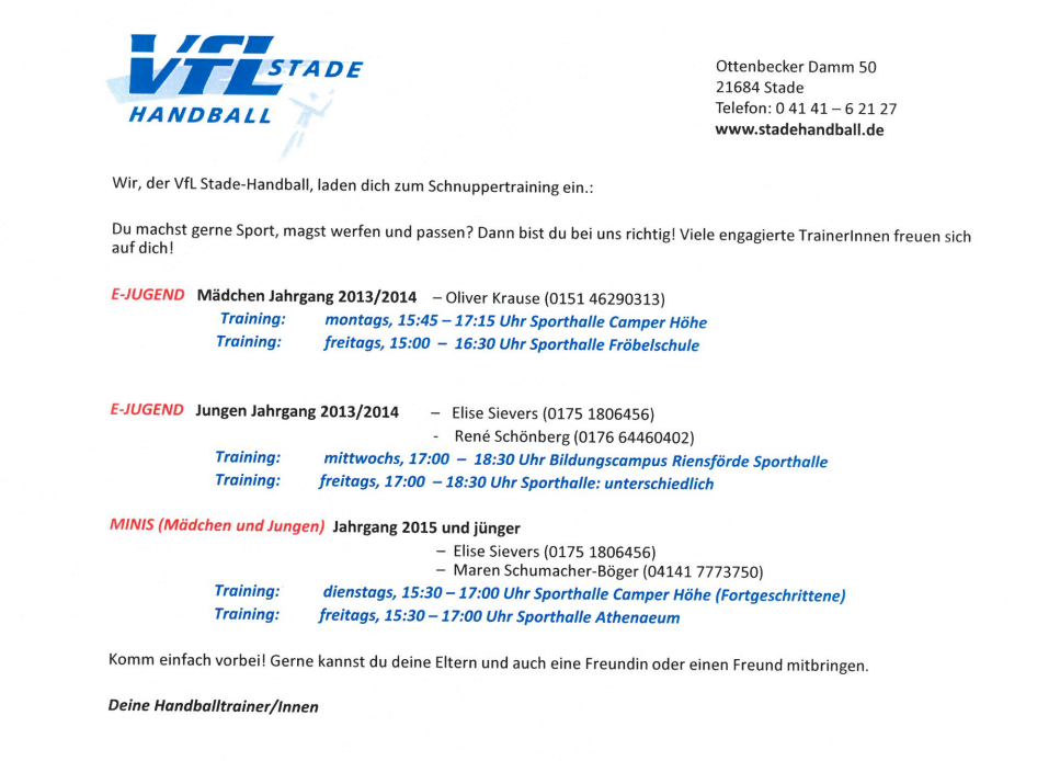 Startseite » Bildungshaus » Besuch des VFL Stade: Handballaktionstag