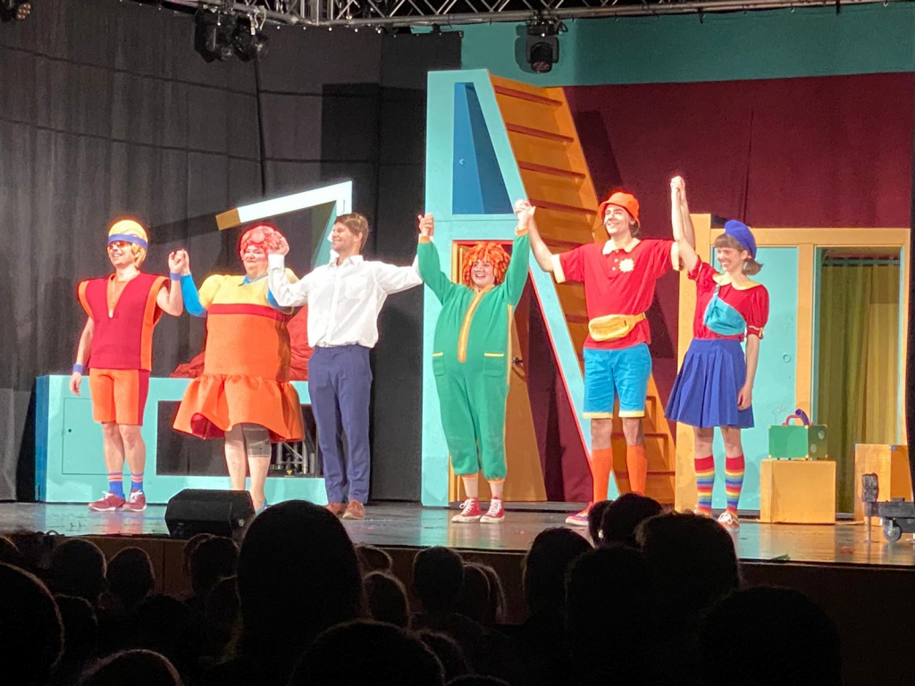 Das quirlig-freche Sams, das den schüchternen Herrn Taschenbier ordentlich durcheinanderwirbelt, brachte die Kinder immer wieder zum Lachen. Die Schülerinnen und Schüler verfolgten die fröhliche Geschichte gespannt und waren begeistert von den Figuren, der Musik und den vielen humorvollen Momenten.