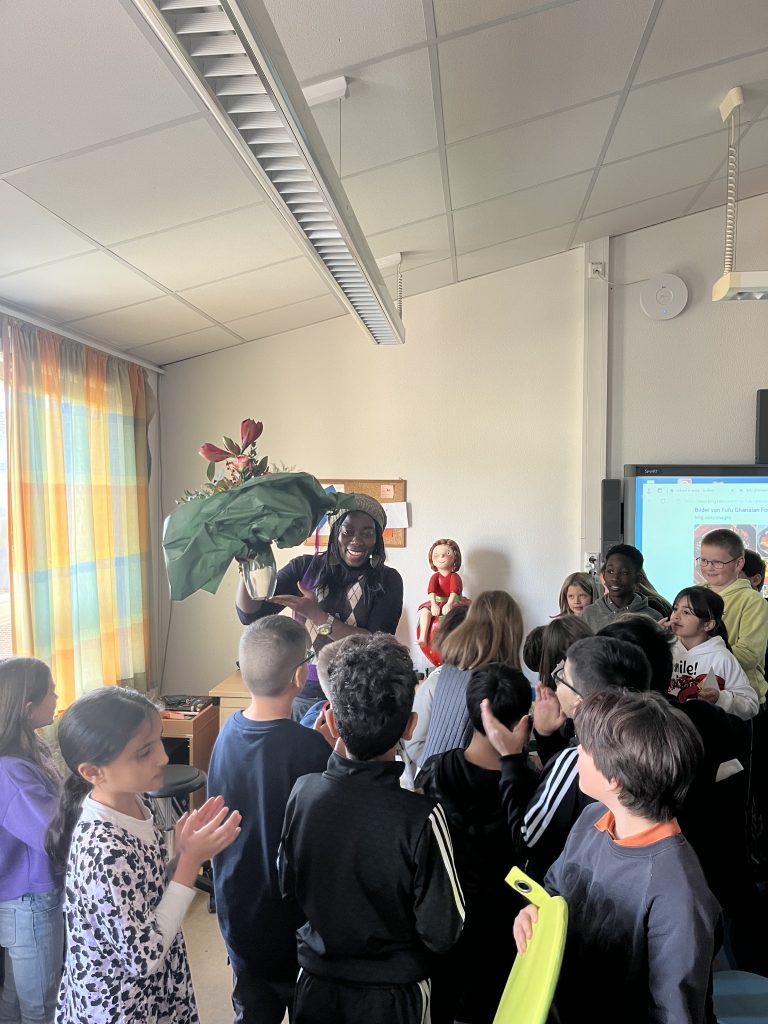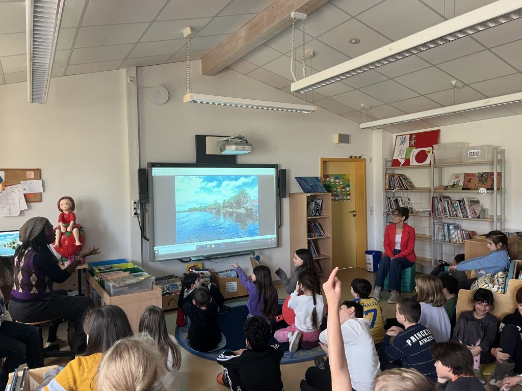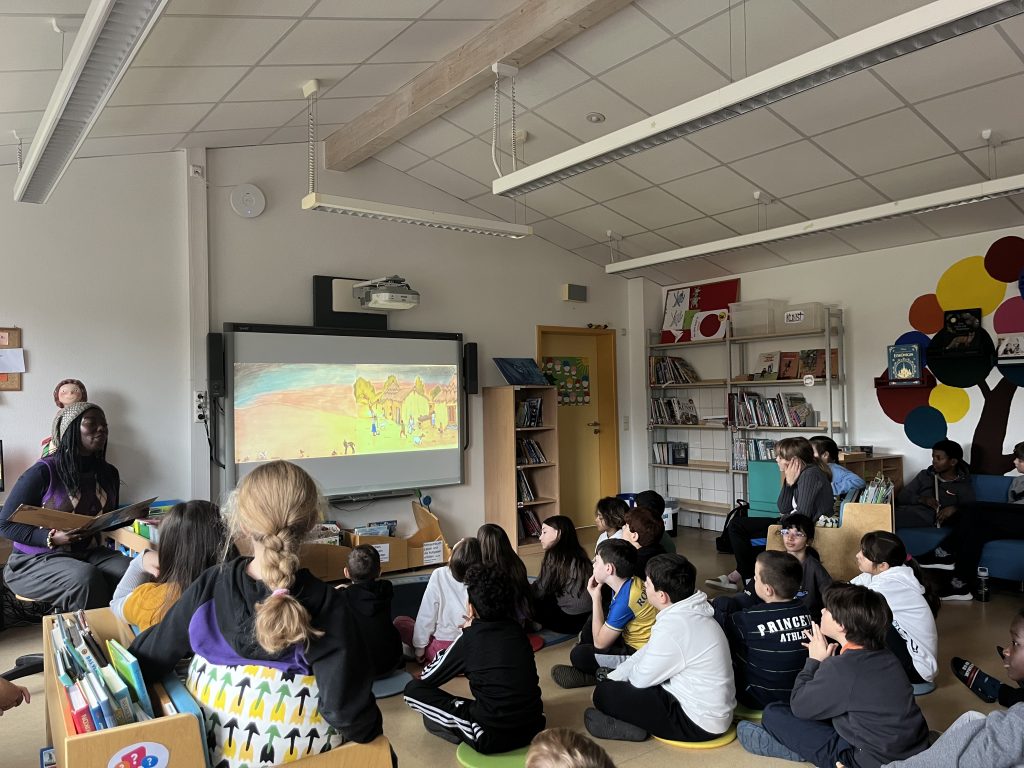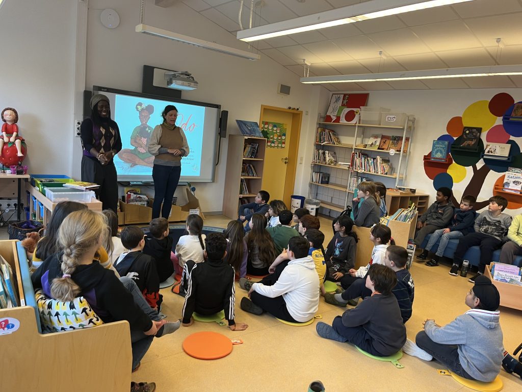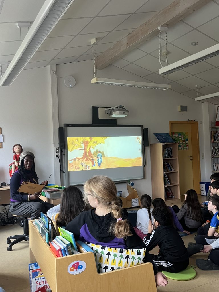 Am vergangenen Freitag, den 22. November 2024, besuchte die Buchautorin und Schauspielerin Dayan Kodua unsere Schule, um den Schülerinnen und Schülern der 3. Klassen einen Einblick in ihre Bücher und ihre Arbeit zu geben. Die Kinder waren begeistert und konnten ihre vielen Fragen kaum zurückhalten. Es war schön zu sehen, mit welchem Interesse sie den Erzählungen von Frau Kodua lauschten. Sie stellte den Schülerinnen und Schülern eines ihrer Bücher vor und nahm sich viel Zeit, um auf die zahlreichen Fragen der Kinder einzugehen. Die Begeisterung für die Geschichten und die Autorin war deutlich spürbar – ein spannender und inspirierender Besuch für alle!