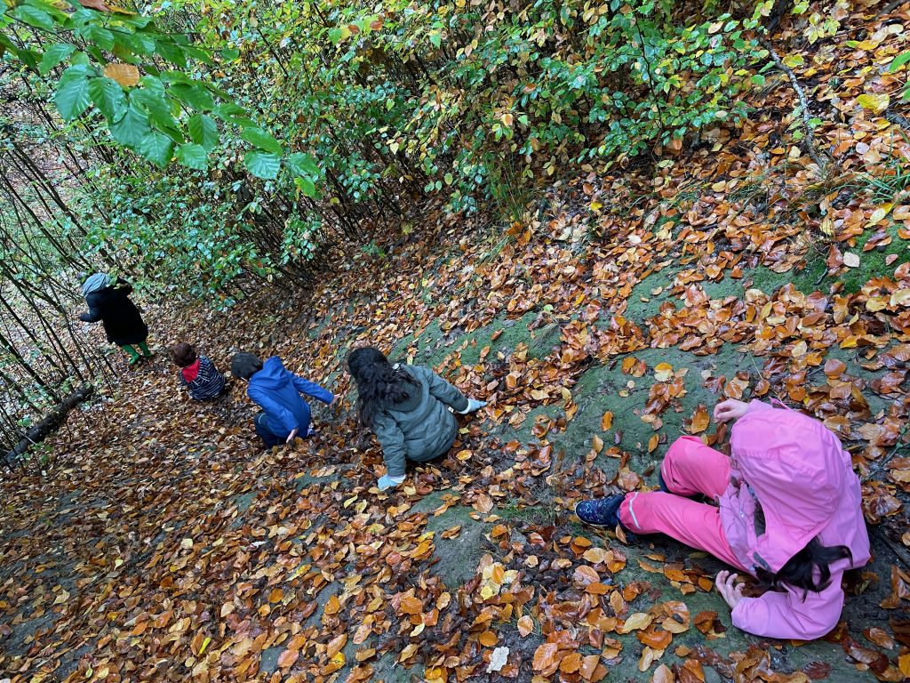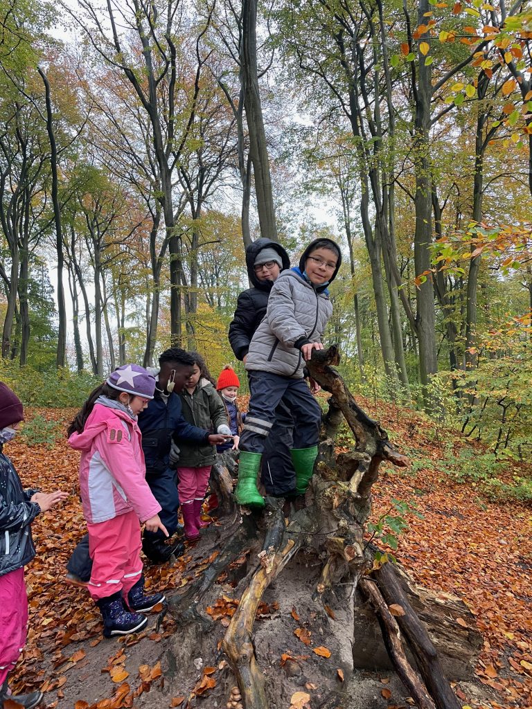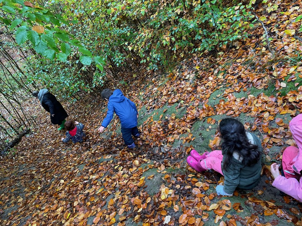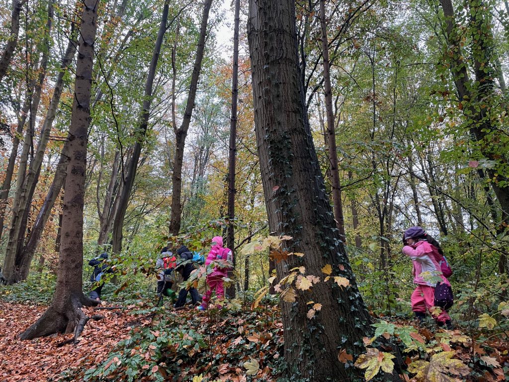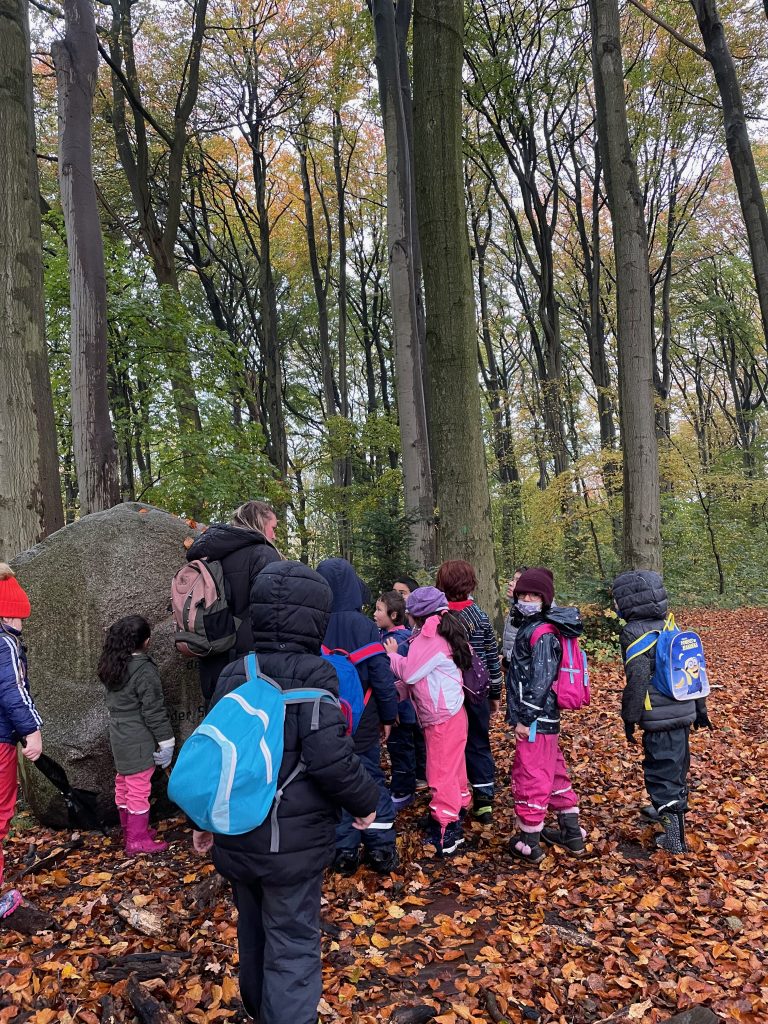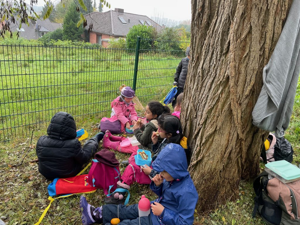 Donnerstags ist Nawi-Tag. Deshalb gehen wir eigentlich jeden Donnerstag in die Lernwerkstatt Naturwissenschaften. In dieser Woche war das anders, denn Magda hat uns mit in den Wald genommen. Wetterfest ausgestattet mit Buddelhosen und Regenjacke gingen wir in den Wald hinter dem Elbeklinikum. Dort gab es viel zu entdecken: Stinkwanzen, Stinkmorcheln, Laub- und Nadelwald und vieles mehr. Magda konnte uns als Expertin alle Fragen beantworten. Zwischendurch picknickten wir im Wald, um dann im Anschluss verstecken zu spielen. Auch eine tolle Waldrutsche haben wir ausprobiert. Gar nicht so einfach, den Berg dann auch wieder hinaufzuklettern! Am Ende waren alle dreckig, müde und glücklich. Dieser Vormittag hat uns sehr viel Spaß gemacht und wir werden ihn mit Sicherheit wiederholen!