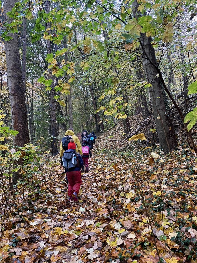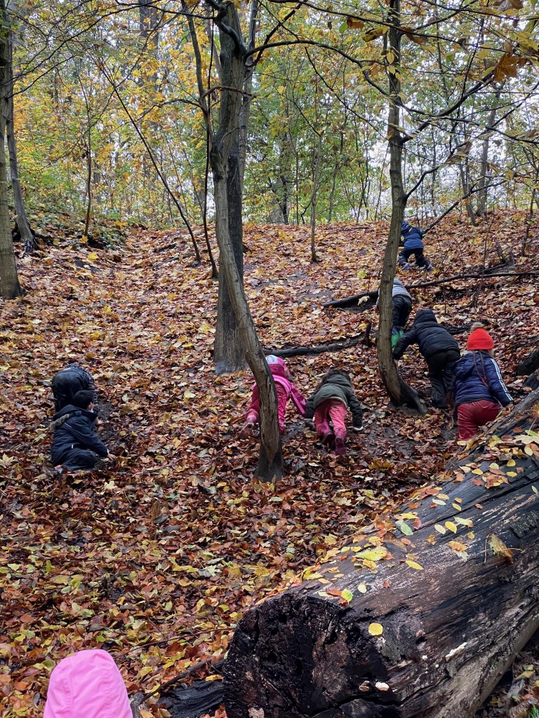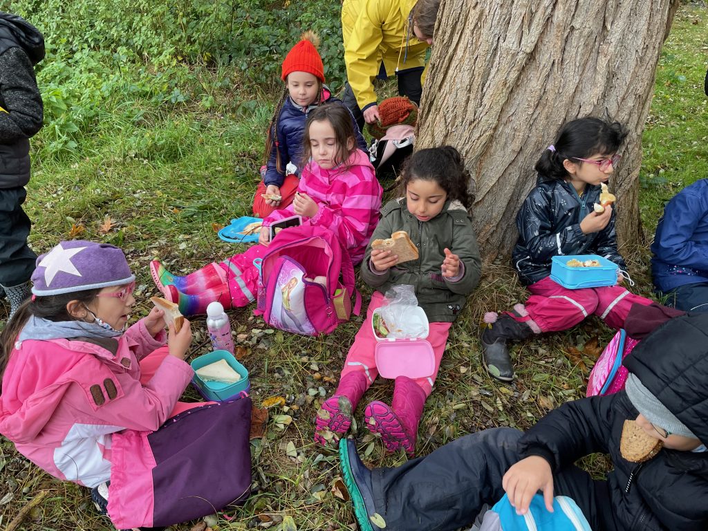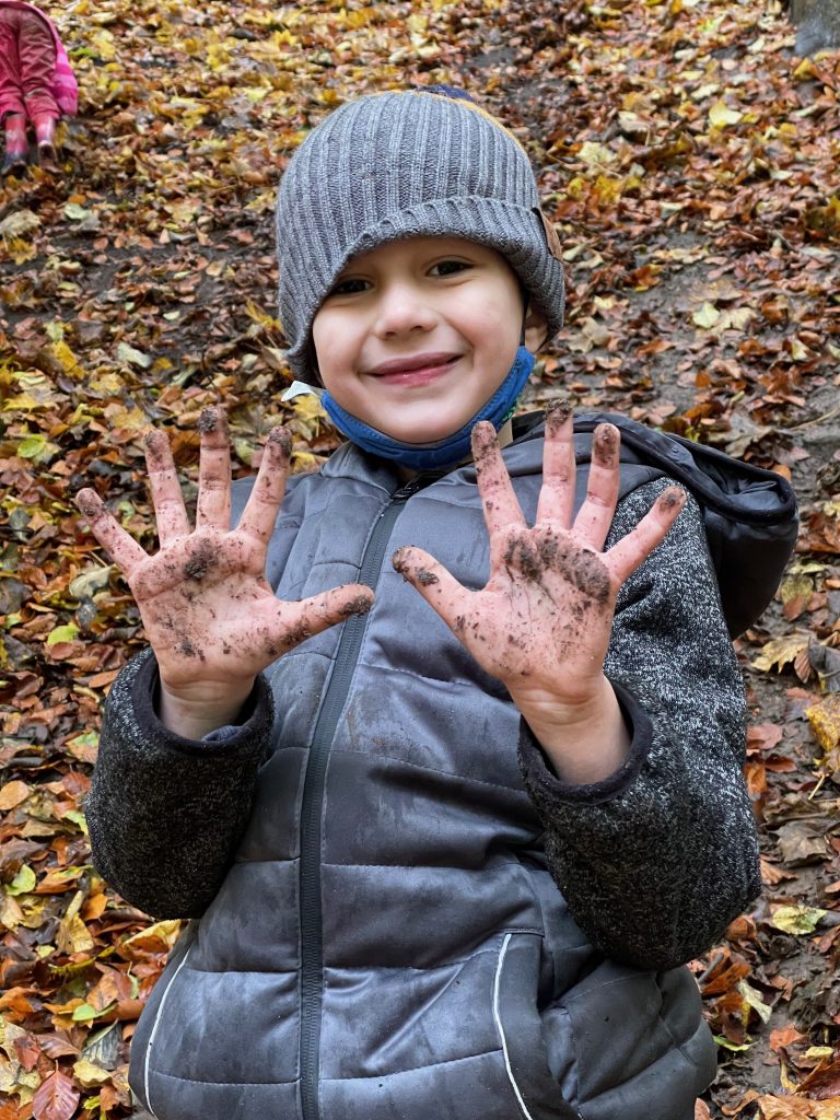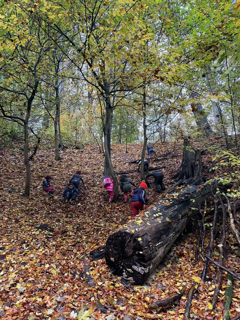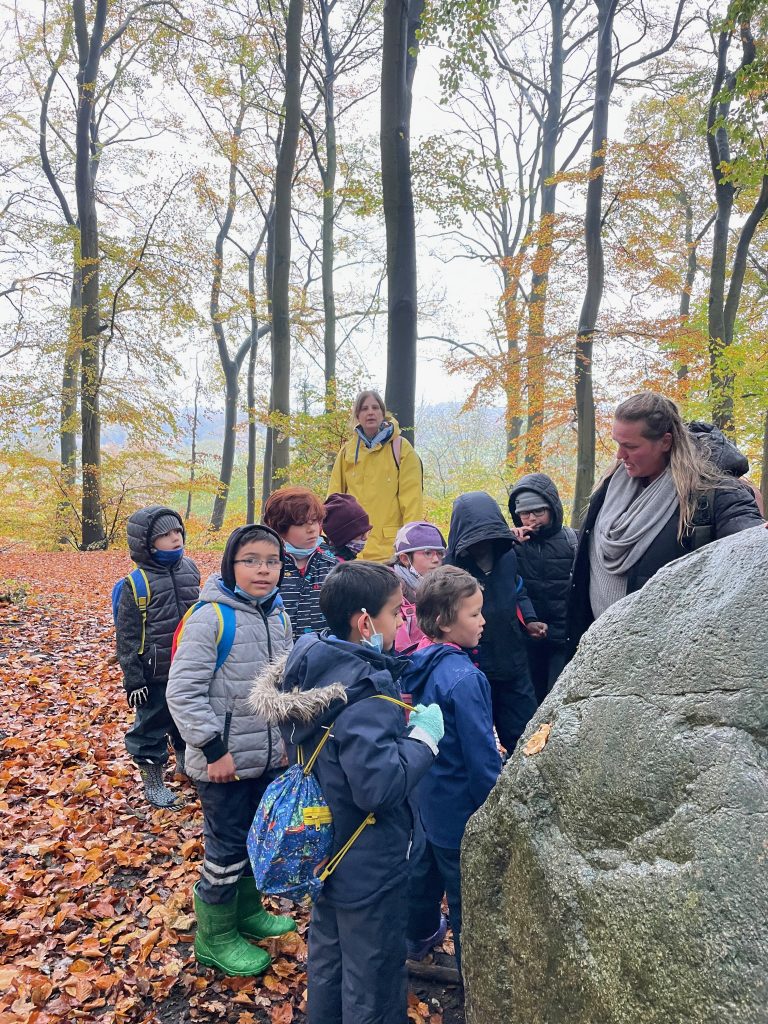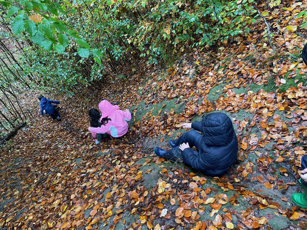Donnerstags ist Nawi-Tag. Deshalb gehen wir eigentlich jeden Donnerstag in die Lernwerkstatt Naturwissenschaften. In dieser Woche war das anders, denn Magda hat uns mit in den Wald genommen. Wetterfest ausgestattet mit Buddelhosen und Regenjacke gingen wir in den Wald hinter dem Elbeklinikum. Dort gab es viel zu entdecken: Stinkwanzen, Stinkmorcheln, Laub- und Nadelwald und vieles mehr. Magda konnte uns als Expertin alle Fragen beantworten. Zwischendurch picknickten wir im Wald, um dann im Anschluss verstecken zu spielen. Auch eine tolle Waldrutsche haben wir ausprobiert. Gar nicht so einfach, den Berg dann auch wieder hinaufzuklettern! Am Ende waren alle dreckig, müde und glücklich. Dieser Vormittag hat uns sehr viel Spaß gemacht und wir werden ihn mit Sicherheit wiederholen!