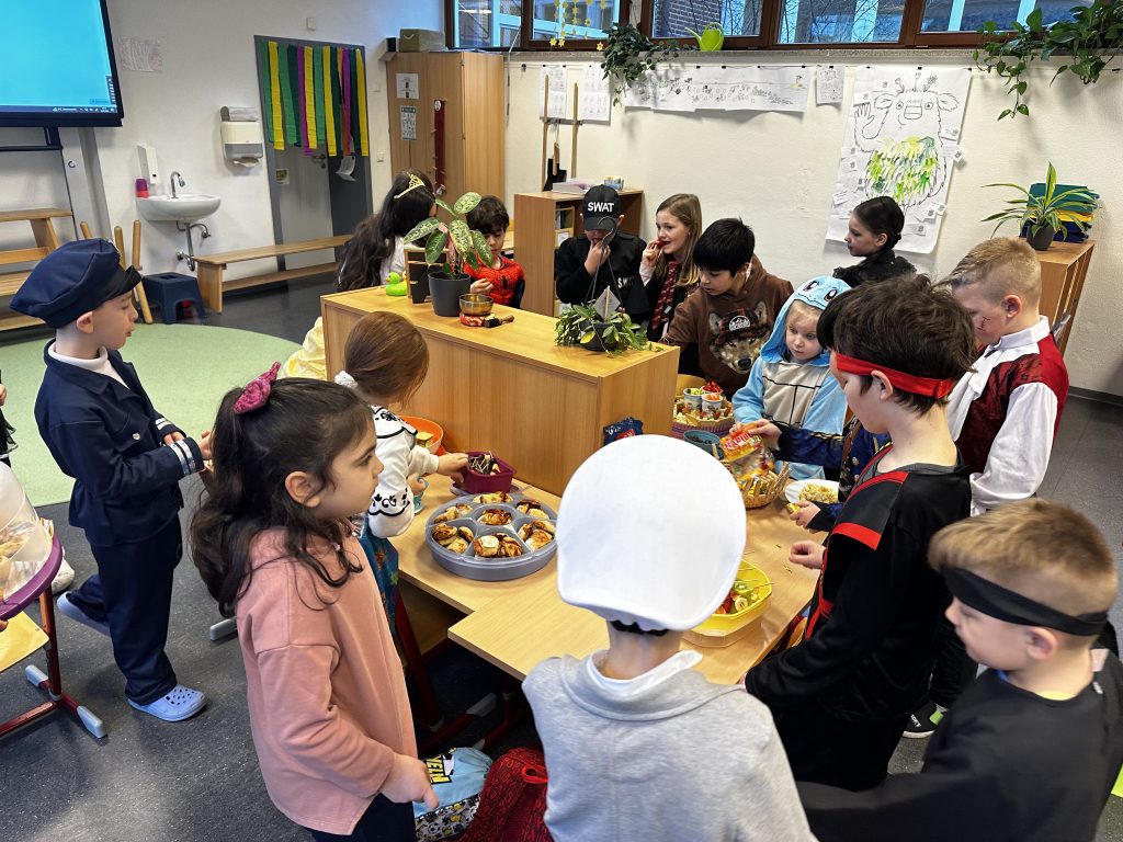 Jede Klasse hatte ihr eigenes kleines Buffet vorbereitet, gefüllt mit Leckereien, die von den Kindern und ihren Eltern zubereitet wurden.