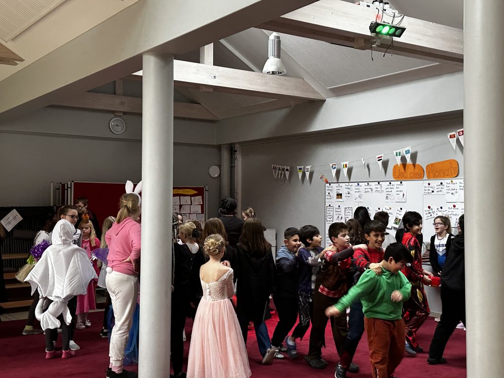 Neben dem Schlemmen standen Spiele und Tanzen auf dem Programm. Besonders die Schülerinnen und Schüler der Jahrgänge 3 und 4 konnten sich auf eine Mini-Disco in der Aula freuen. Hier wurde zu verschiedenster Musik getanzt und gelacht, während bunte Lichter die Tanzfläche erhellten.