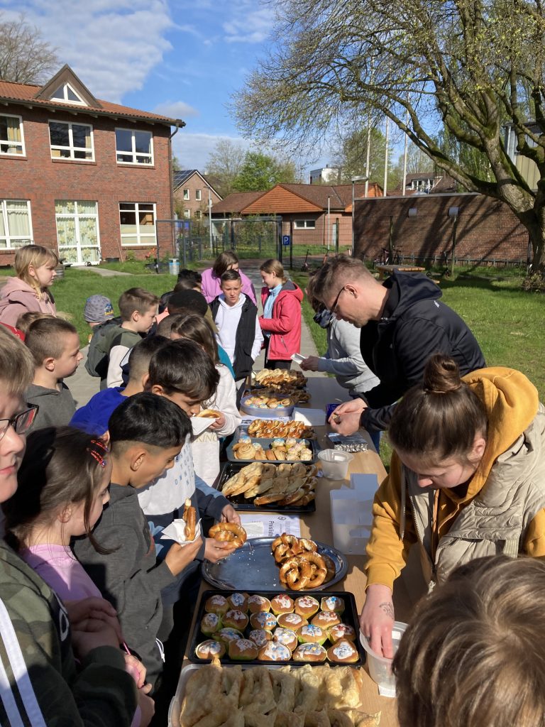 Heute sorgten engagierte Eltern der ersten Klassen für eine süße Überraschung auf unserem Schulhof! In der Pause boten sie Muffins, Brezeln und Zimtschnecken zum Verkauf an, was bei den Kindern großen Anklang fand. Wir danken den Eltern herzlich für ihre Leckereien und freuen uns auf weitere gemeinsame Momente!