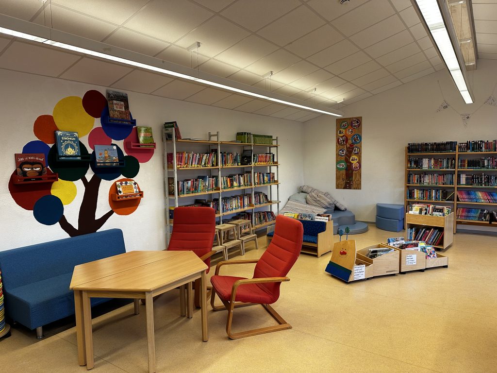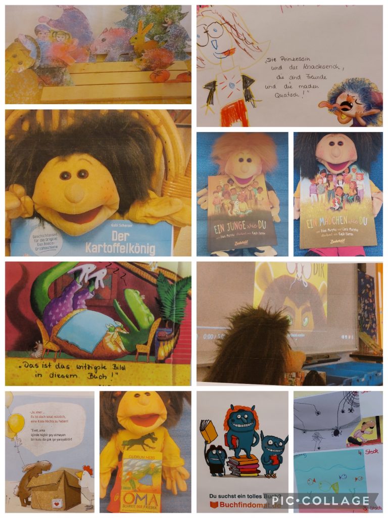 Wir stöbern in den Büchern, philosophieren, erarbeiten uns kreativ die Geschichten oder spielen das Gehörte nach. Wir nutzen das klassische Buch, das Smartboard, die Erzählschiene, Hörspiele und Musik. Bücher und Geschichten in verschiedenen Sprachen zu hören und den Klang fremder Worte zu lauschen sind ebenso spannende Momente, wie die gern gesehenen GastleserInnen z.B. aus der Elternschaft.