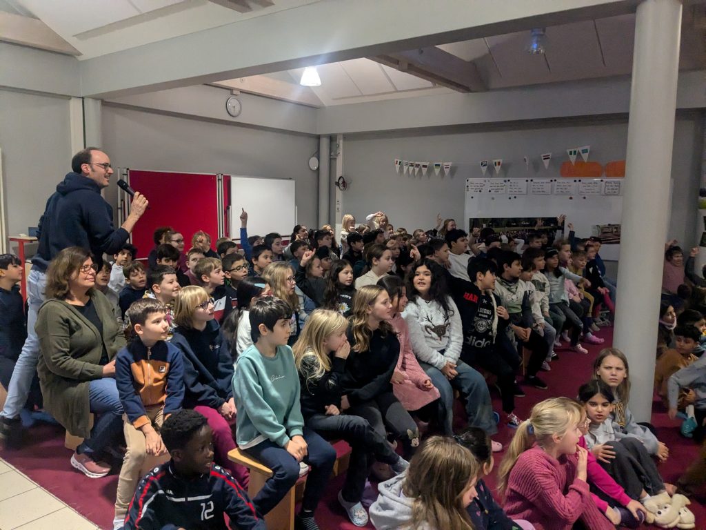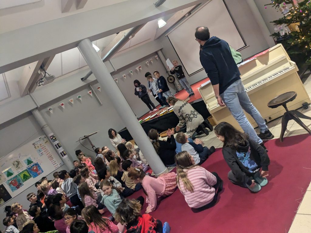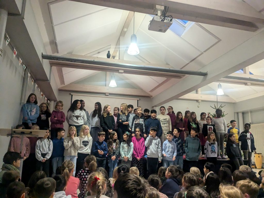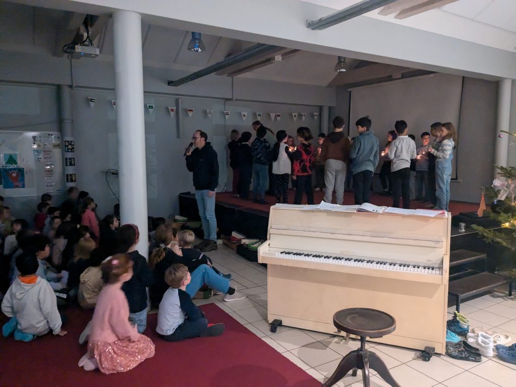 Zum Abschluss durfte ein Klassiker nicht fehlen: Gemeinsam stimmten alle Schülerinnen und Schüler – fast textsicher – Rolf Zuckowskis „In der Weihnachtsbäckerei“ an. Die Aula füllte sich mit fröhlichem Gesang und schloss das letzte Plenum des Jahres auf die bestmögliche Weise ab.