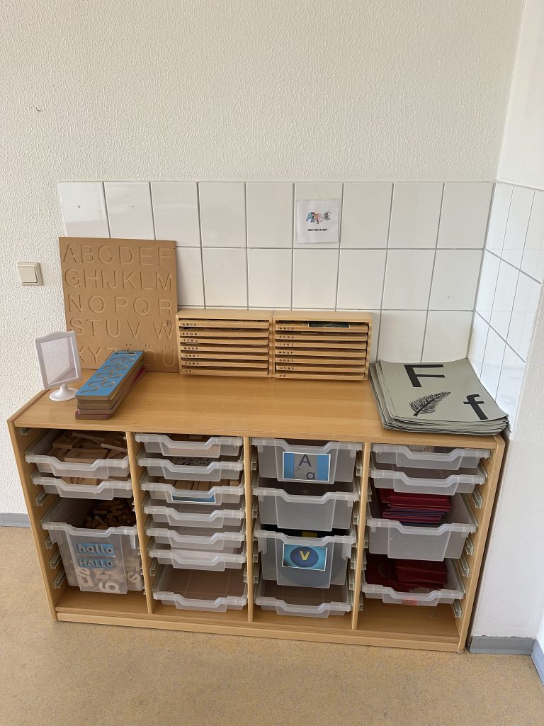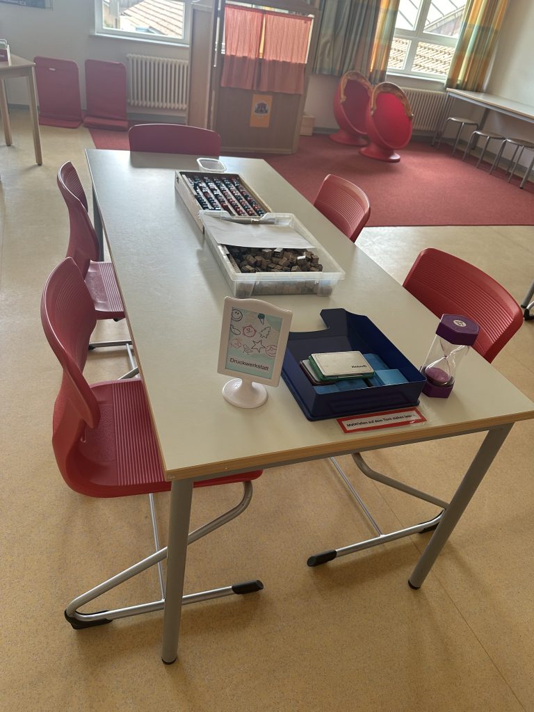 • Hier können die Kinder Buchstaben drucken und erste Erfahrungen im Umgang mit verschiedenen Arten von Schrift sammeln.